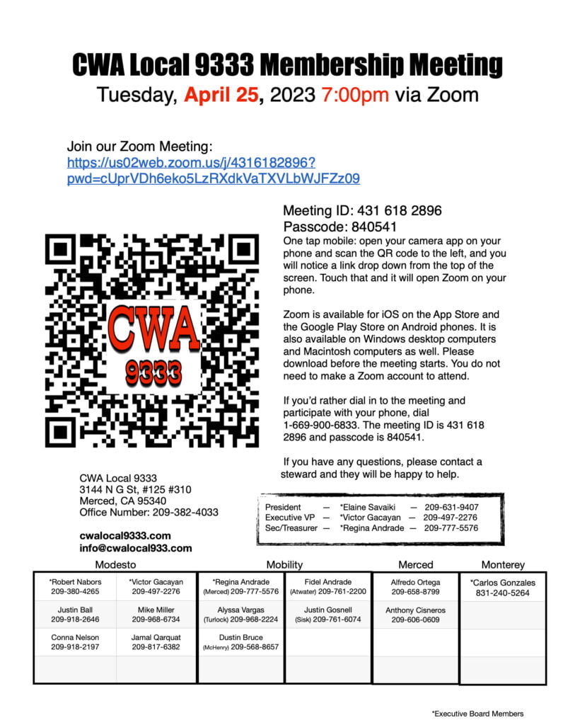 CWA Local 9333 Membership Meeting